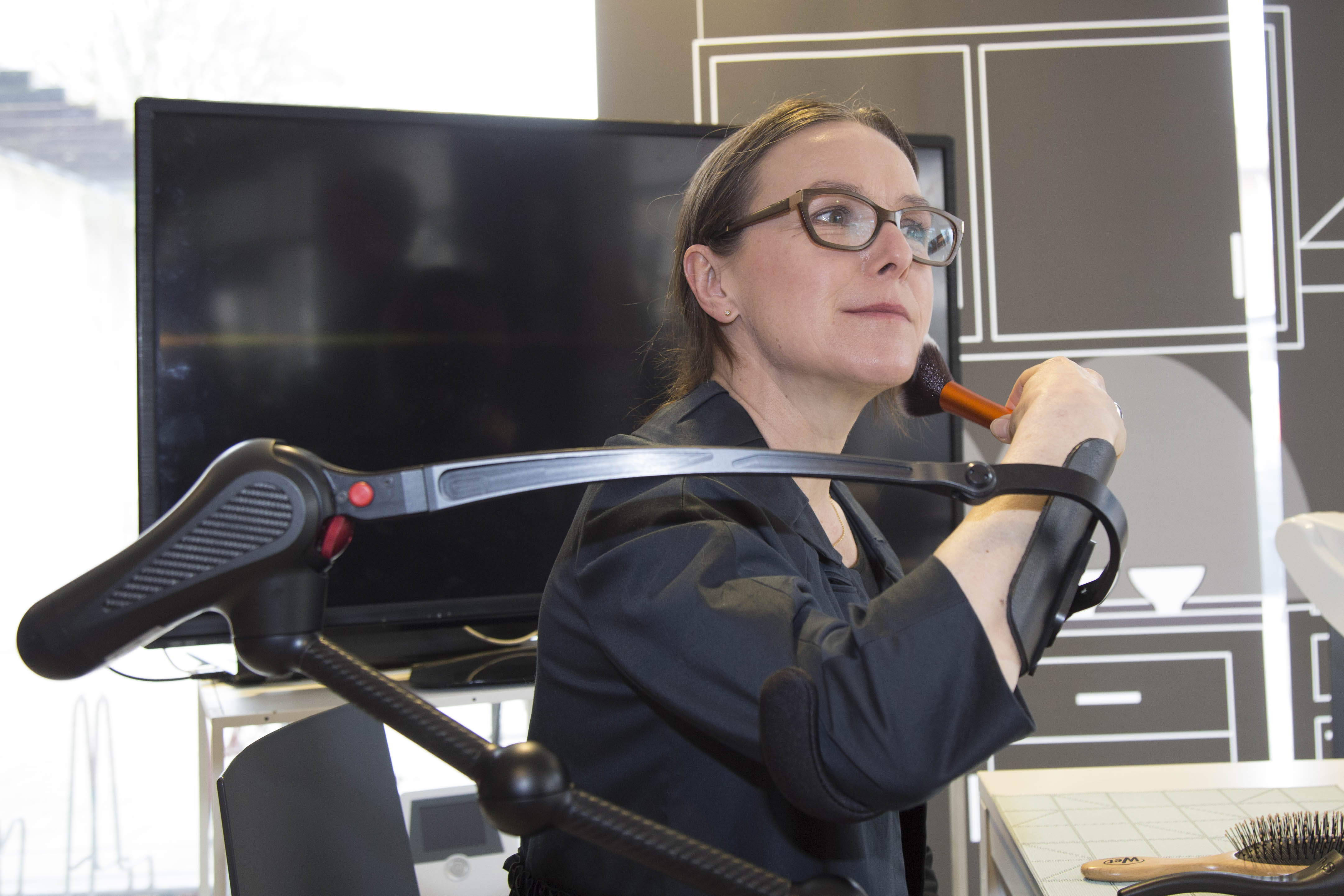 Aarhus Kommune arbejder kraftigt med at forbedre forholdene omkring hjælpemidler til alt muligt lige fra den helt simple dåseåbner til den mere komplicerede bukseaftager eller de smarte og sammenklappelige kørestole. Der arbejdes også mere og mere intenst med stemmestyrede døre, tv apparater og klædeskabe. – På billedet ses en “Påklædnings og vaskestol”.